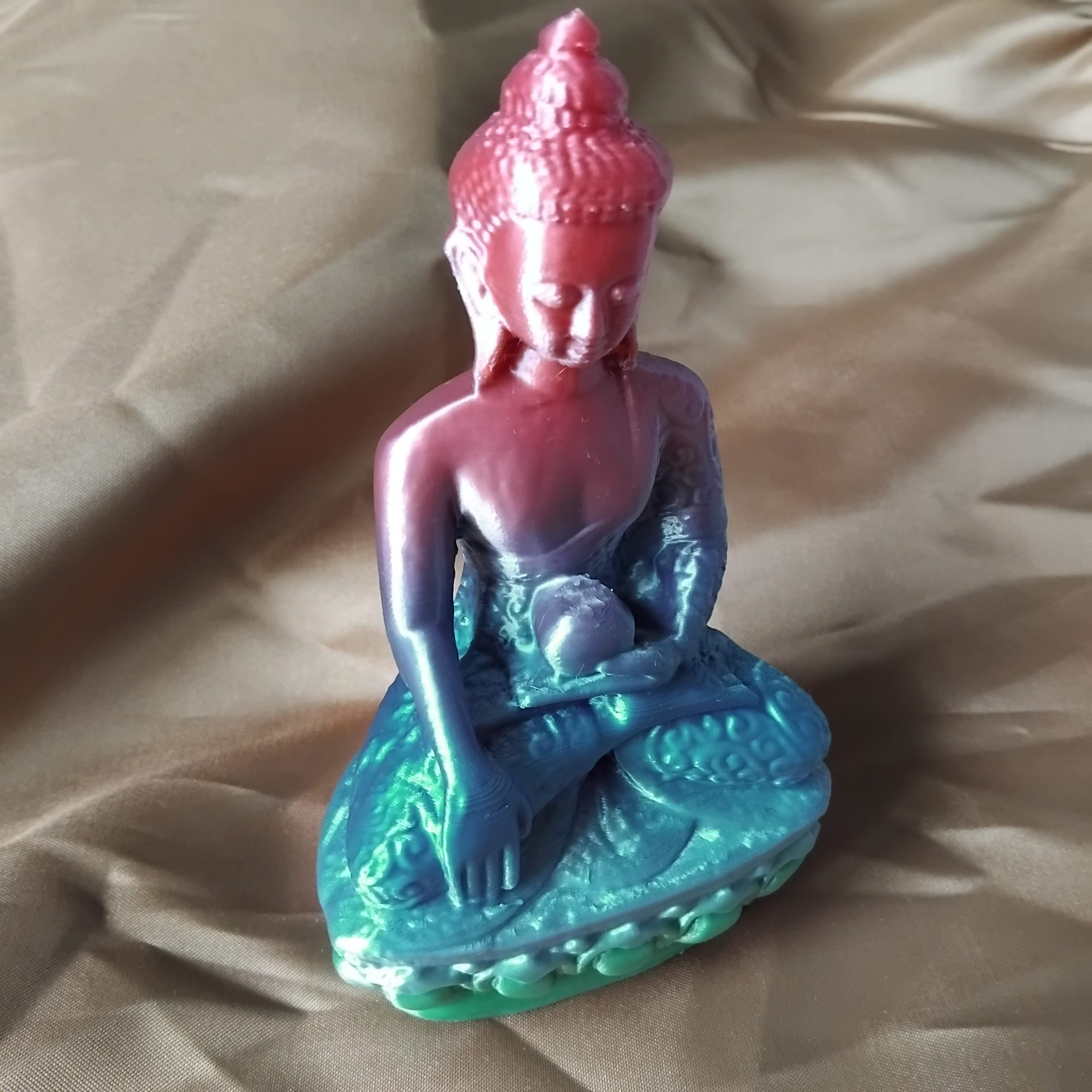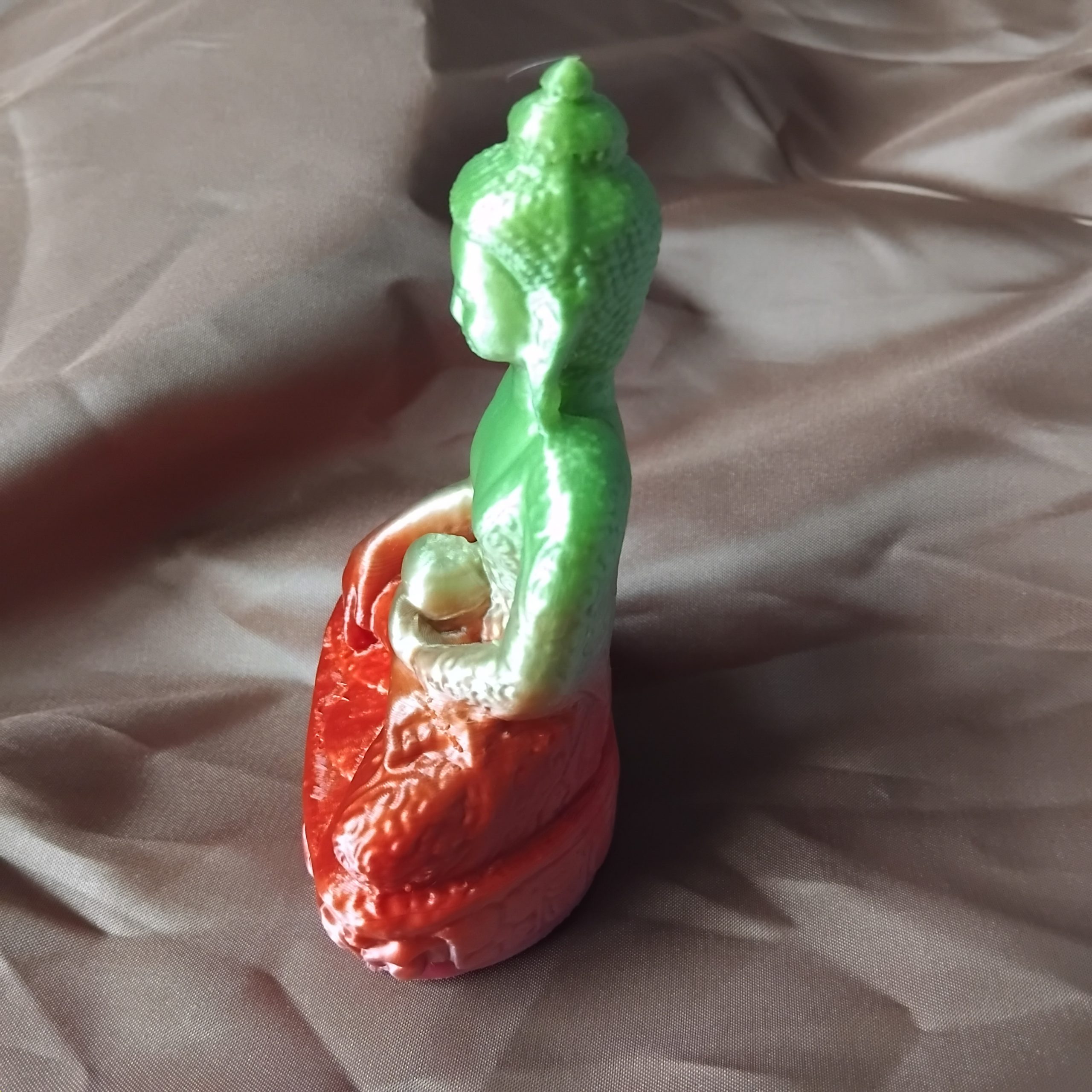 Bouddhas aux multiples couleur en impression 3D avec filament PLA (polylactic acid) de 1,7mm de diamètre. La statut fait 15 cm de haut pour 8 cm de large.
