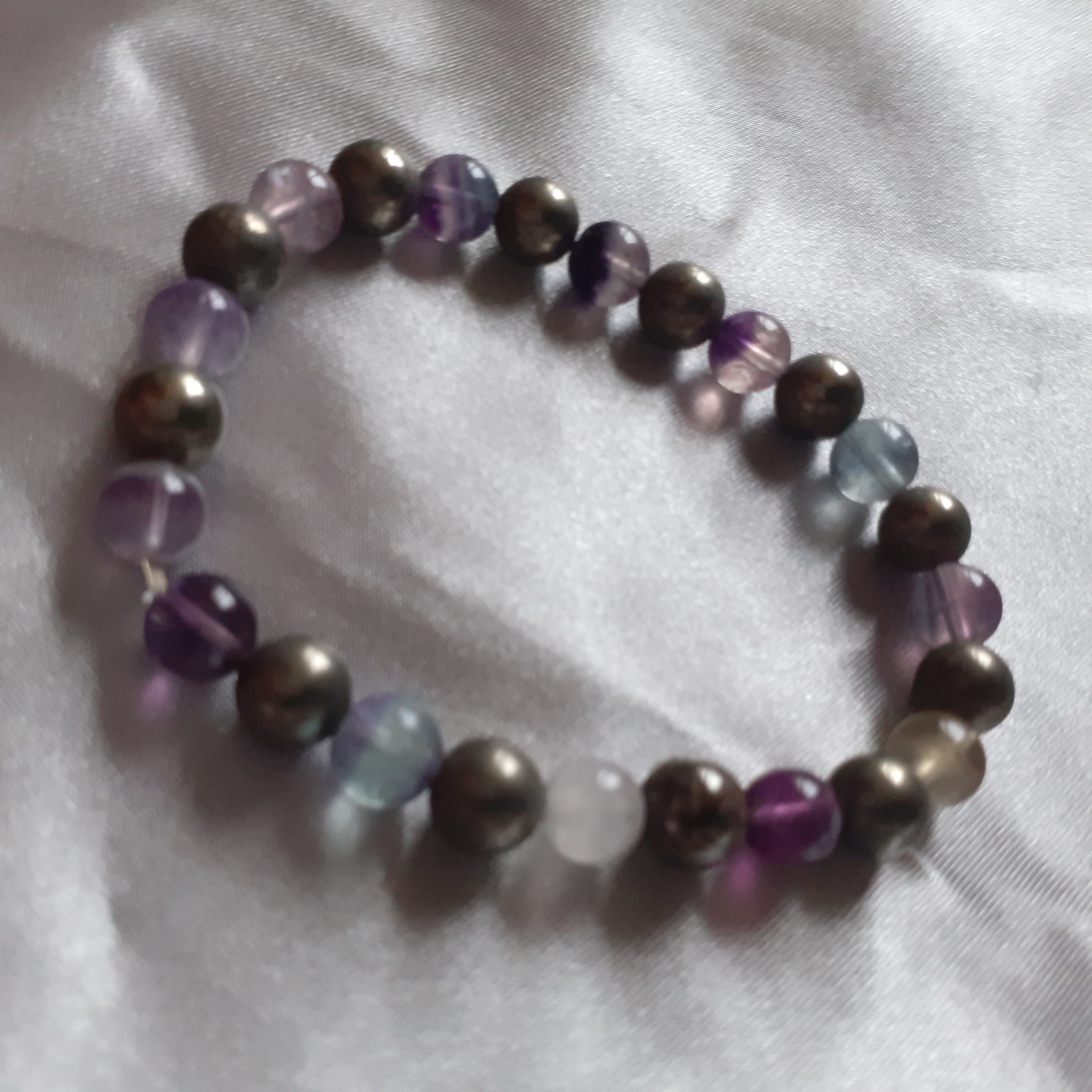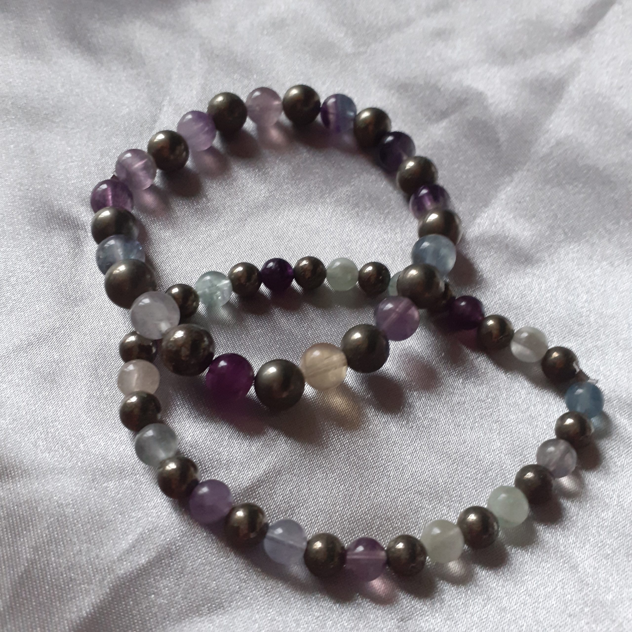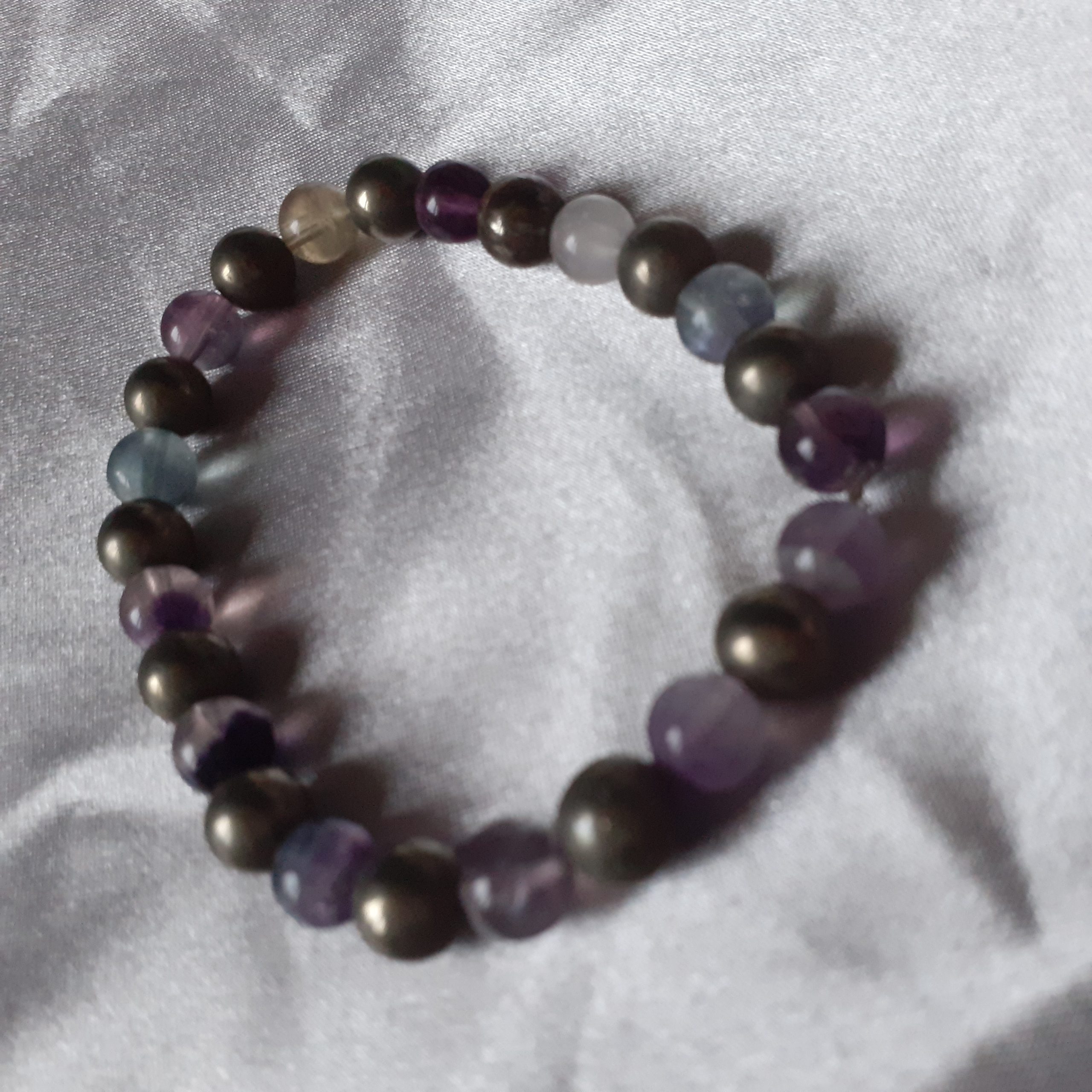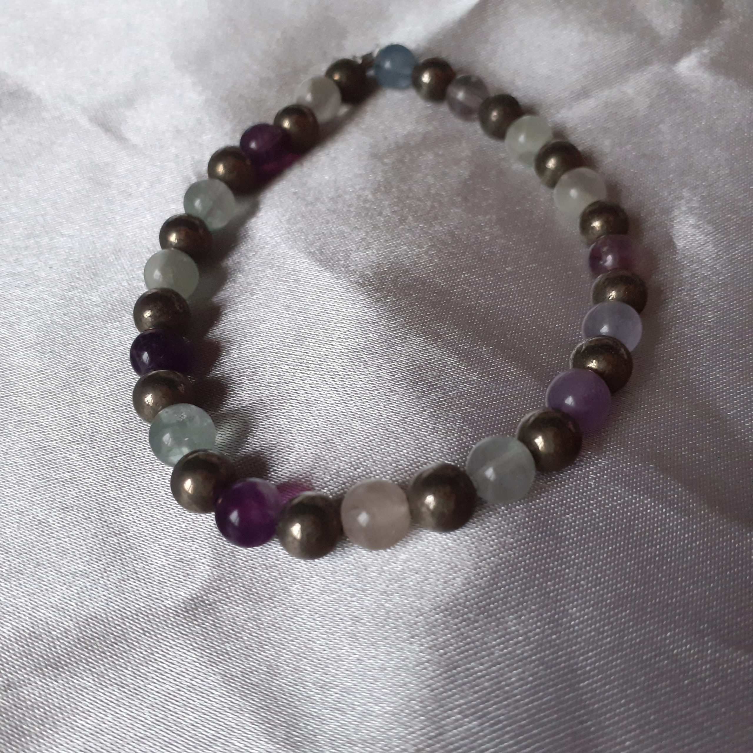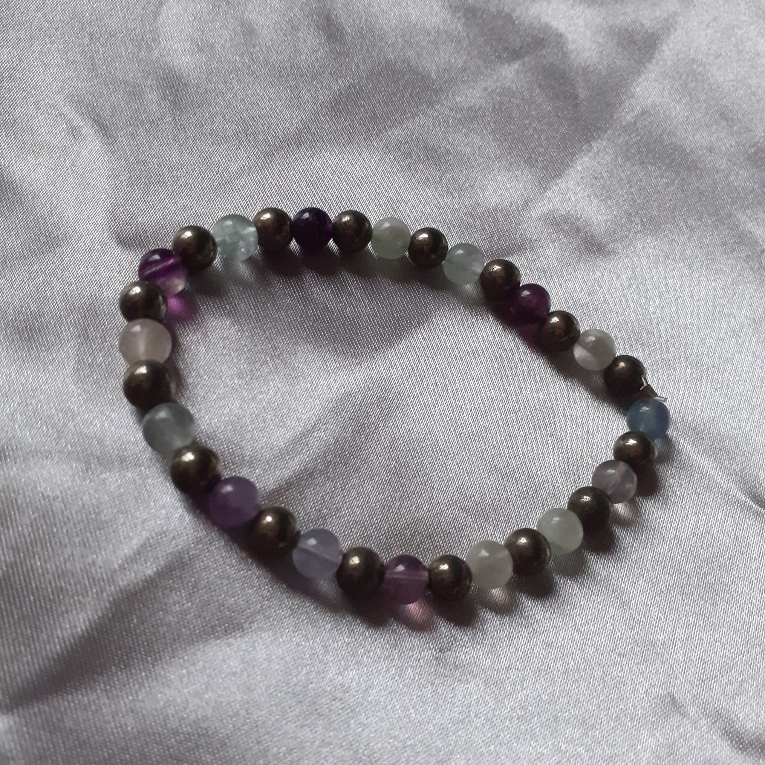 Bracelet mémoire et concentration est composé de la Pyrite et de la Fuorine.